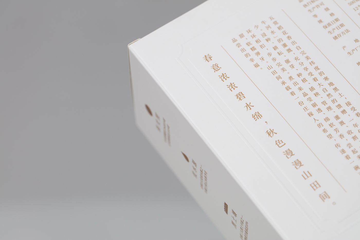 '武昌'大米是從中國黑龍江省肥沃的土壤中采摘的 - 其堅實,明亮的顆粒與豐富的風(fēng)味和高營養(yǎng)成分相輔相成。在北方農(nóng)場的包裝設(shè)計中,這種獨特性和個性被封裝在一個清脆的白色盒子中,展示了空虛和米飯純度的概念。 “禪”和愛的表達(dá)在一個詳細(xì)的外層描繪,中國東北部的原生動物,浮雕的米粒和金/銀激光箔,在周圍移動時會改變顏色,反映出天空和吸引用戶注意作為一個獨特的個體。設(shè)計可能看似簡單,但層層疊疊,具有許多復(fù)雜性,體現(xiàn)了大米的自然,健康和優(yōu)質(zhì)。